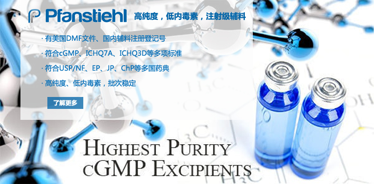 “熱烈祝賀Pfanstiehl的注射級甘氨酸Glycine(G-140)喜獲CDE登記號F20250000403, 這是Pfanstiehl產品獲得的第18個CDE登記號!”甘氨酸在醫藥輔料制劑中應用廣泛,, 可作為緩沖劑,增溶劑,穩定劑等,具有諸多優勢。Pfanstiehl秉承一貫高品質理念,為滿足全球生物制藥行業對于高品質甘氨酸的需求,隆重推出的注射級甘氨酸Glycine (G-140), 具有超高純度,超低內毒素,超低金屬殘留的特點,單獨檢測29種金屬離子,并且新增DNA,RNA,DNA酶,RNA酶和脂肪酶,亞硝酸鹽等多項質量指標的檢測,符合多國藥典規定(USP, EP, BP, JPE, ChP),可用于生物治療性藥物和疫苗的生產。產品信息:· 產品名稱:Glycine, High Purity, Low Endotoxin, Low Metals, USP, EP, BP, JPE, ChP (G-140)· 中文名稱:甘氨酸· 分子式:C2H5NO2· 分子量:75.07 g / mol· CAS號:56-40-6· 產品貨號:G-140產品特點: · 超高純度,超低內毒素,超低微生物含量,超低金屬雜質殘留· 質量指標新增DNA,RNA,DNA酶,RNA酶,脂肪酶和亞硝酸鹽檢測· 符合多國藥典:USP, EP, BP, JPE, ChP· 符合ICH Q3D標準· 符合GMP標準· 已獲DMF和CDE登記號 產品應用:· 緩沖劑· 穩定劑· 增溶劑如果您對Pfanstiehl注射級別Glycine G-140感興趣,歡迎聯系Pfanstiehl 中國區代理商北京西美杰科技有限公司獲得如下詳細的產品概況說明文件和測試樣品。Pfanstiehl Inc.最新產品系列如下,歡迎聯系北京西美杰科技有限公司獲取100g裝免費樣品。北京西美杰科技有限公司為Pfanstiehl中國代理,為客戶提供完善的技術支持與售后服務。歡迎撥打西美杰客服電話400-050-4006或者登陸網站www_xmjsci_com.shtaohao.com了解更多信息。 更多>